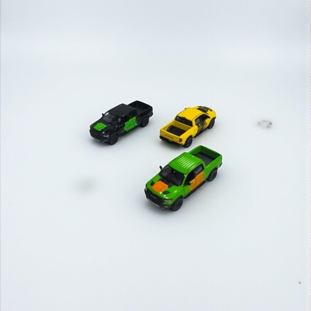 Cada detalle está cuidadosamente trabajado: parrilla frontal imponente, faros LED realistas, líneas musculosas y caja trasera detallada, todo fiel al modelo original. Fabricado en metal de alta calidad, este Dodge Ram ofrece una apariencia sólida y un acabado premium digno de cualquier colección.
