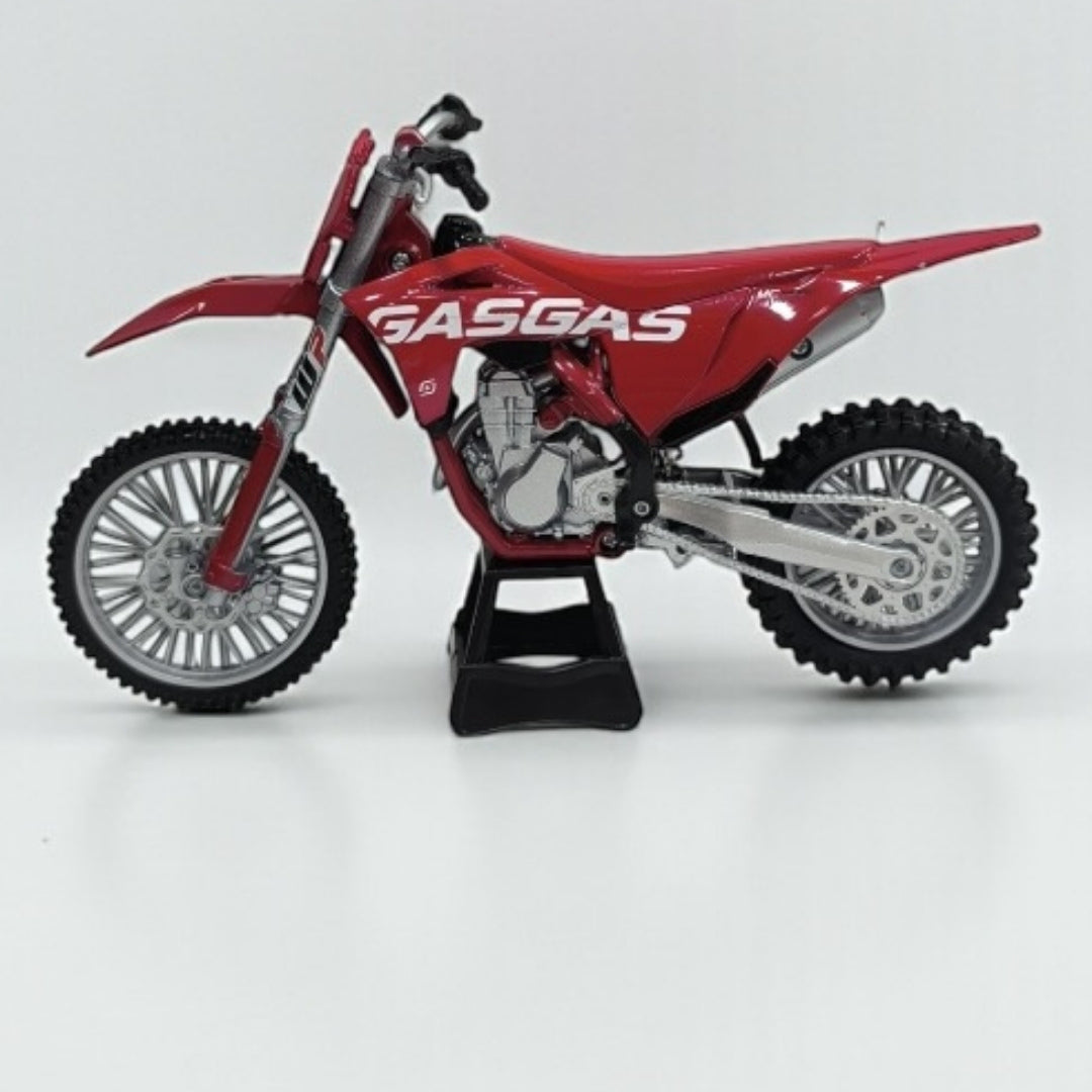 Esta moto GAS GAS a escala 1:12 es una pieza imprescindible para los amantes del motocross, enduro y las motos de alto rendimiento. Su diseño fiel al modelo real captura la esencia racing de la marca GAS GAS, reconocida mundialmente por su dominio en terrenos extremos y competencias off-road.