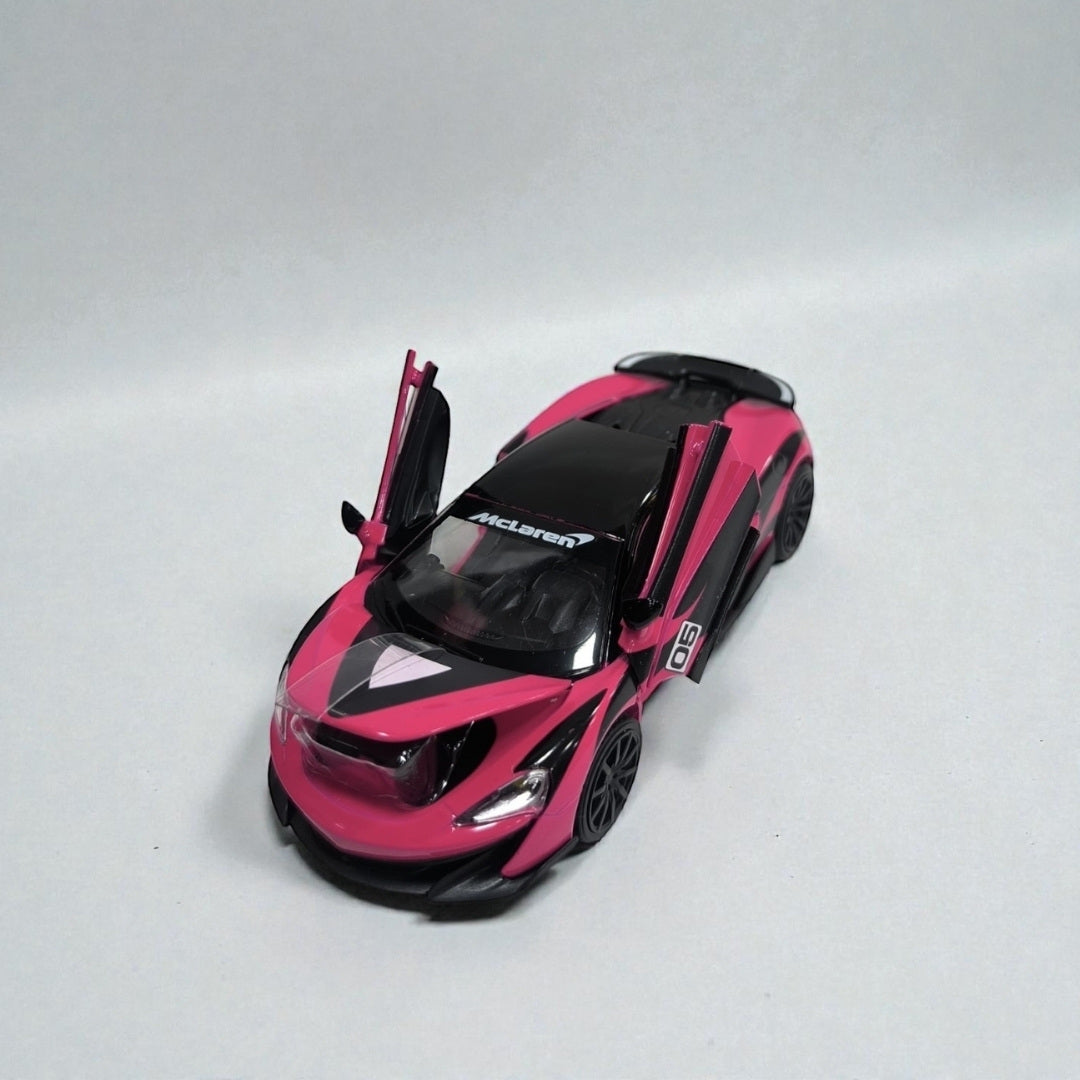 Este modelo a escala 1:27 del McLaren 600LT reproduce con gran fidelidad el diseño agresivo, aerodinámico y deportivo de uno de los supercars más radicales de la marca británica. Ideal para coleccionistas y fanáticos de los autos de alto rendimiento que buscan piezas con presencia y exclusividad.