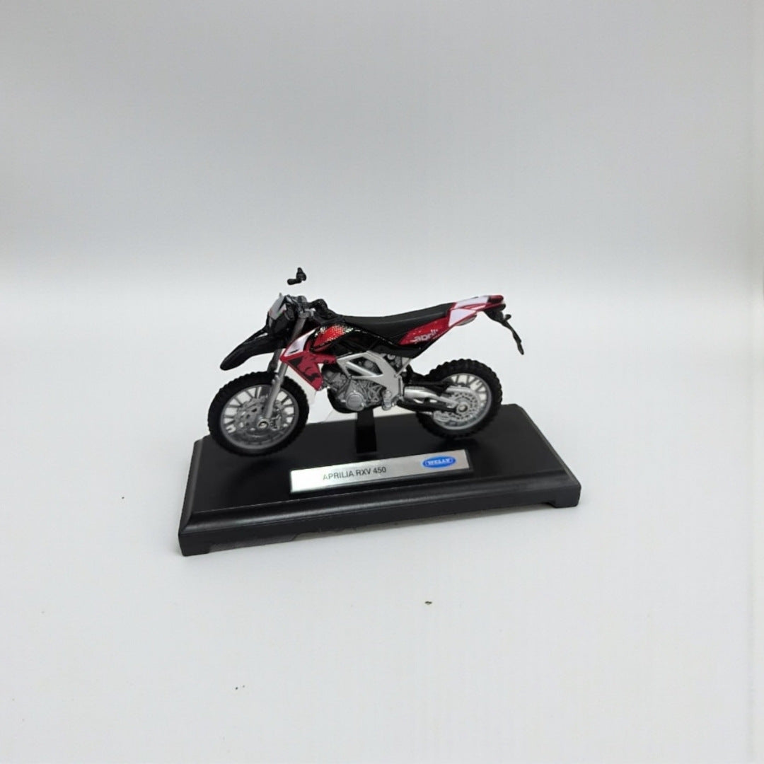 Agrega esta Aprilia RX V 450 a tu colección, úsala como pieza decorativa o regálala a un amante de las motos deportivas. Cada modelo está cuidadosamente fabricado, garantizando durabilidad y presentación impecable.