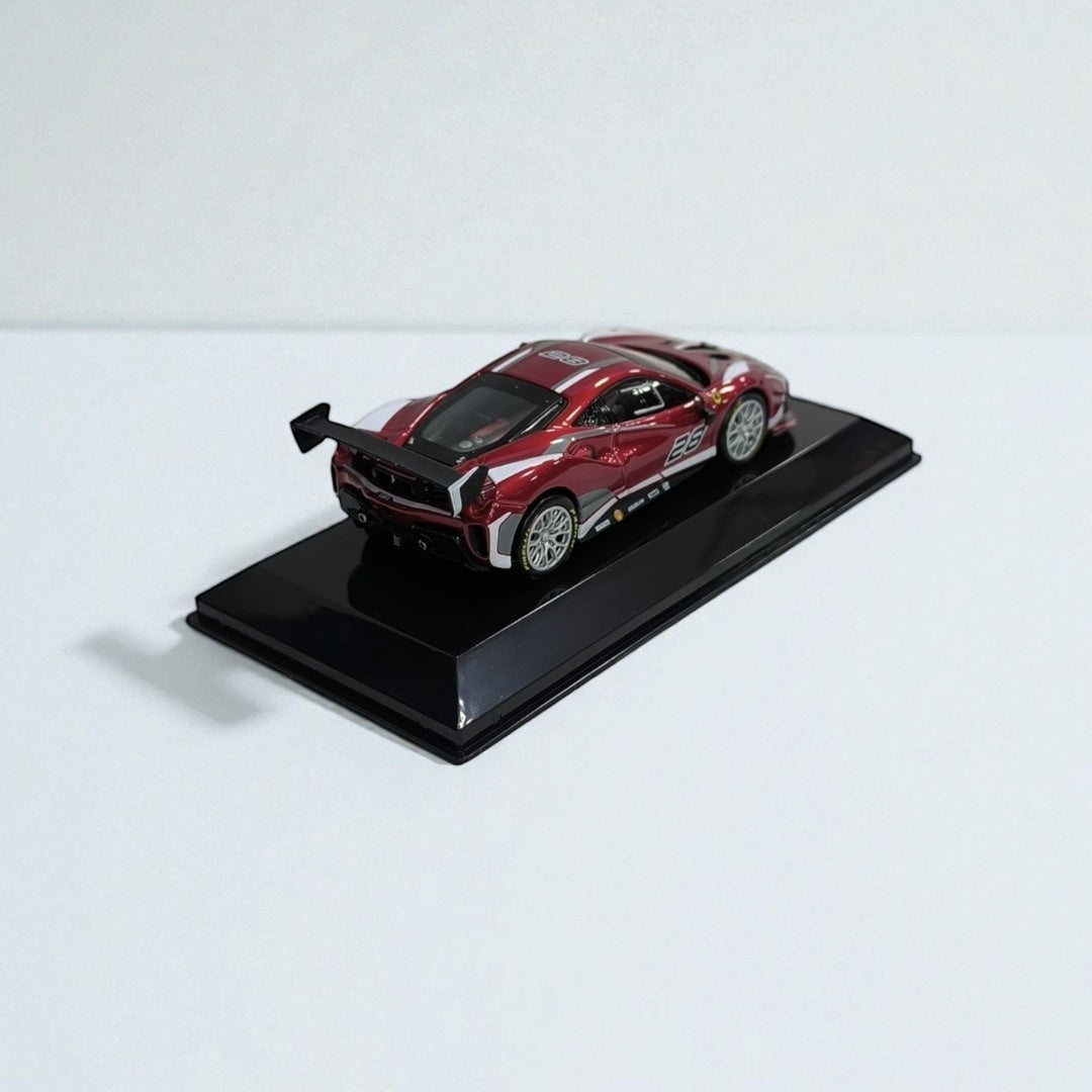 Fabricado en metal de alta calidad, reproduce fielmente cada detalle del auto real: alerones aerodinámicos, difusores, frenos de competición e interior de piloto profesional. Su formato compacto mantiene una presencia imponente, perfecta para quienes aprecian la precisión, la tecnología y el ADN Ferrari.